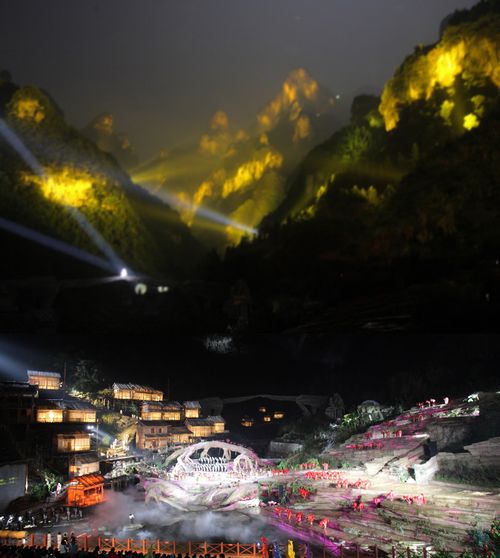 —分享— 哈利路亚音乐厅 张家界市推出大型山水实景音乐剧《天门狐仙—新刘海砍樵》,主表演台与峡谷、奇峰、森林、溪流飞瀑融为一体,共同形成一个纵深数公里、横宽和高差均逾千米的超级大舞台。 来源:湖南日报 编辑:郑龙腾