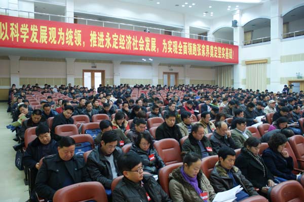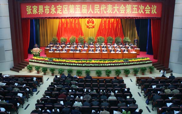 团结奋斗创伟业,继往开来谱新篇。12月21日上午,永定区第五届人民代表大会第五次会议在市人大礼堂隆重开幕,来自全区各条战线的200多名人大代表肩负着全区40多万人民的希望和嘱托,全面落实科学发展观,认真履行宪法和法律赋予的各项职责,共商永定经济和社会事业发展大计。会议听取了永定区政府2011年工作报告和法院工作报告。