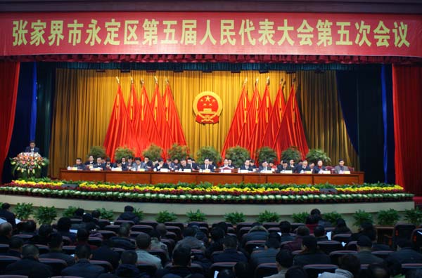 报告对永定区五届人大常委会2011年的主要工作进行了回顾,报告指出:2011年是“十二五”规划的开局之年,也是永定区经济社会发展取得显著成绩的一年。一年来,区人大常委会以邓小平理论和“三个代表”重要思想为指导,深入贯彻落实科学发展观,坚持党的领导、人民当家作主、依法治区的有机统一,紧紧围绕全区工作大局依法行使职权,各项工作均有新的进展,全面完成了区五届人大四次会议确定的各项工作任务。郑遐耀说,这些成绩主要体现在以下几个方面:认真制定决定重大事项相关制度,严格执行讨论决定重大事项有关规定;围绕促进经济平稳较快发展开展监督工作,围绕推进依法治区开展监督工作,围绕改善民生、发展社会事业开展监督工作;认真做好人事任免工作,加强任命人员工作监督;代表建议办理有新成效,闭会期间代表活动有新起色;深入开展创先争优活动,加强与各级人大的联系,认真做好了区委安排的中心工作。
