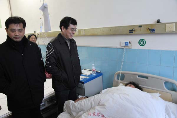 范运田、朱水平还专程来到市人民医院,看望慰问了刚做完手术的凤湾社区党支部书记王作喜同志,勉励她一定要战胜病魔,安心养身,不要担心社区工作,社区群众都非常想念你,等身体好了,再回到社区大家庭中去,更好地为大家服务。