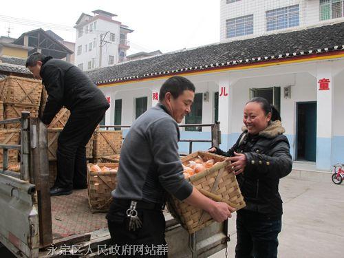1月14日,永定街道办事处紫云居委会残疾青年胡桂香来到永定区儿童福利院,给福利院的25名孤残儿童送去30篓重达700多公斤的脐橙,让孩子们欢喜不已。据了解,胡桂香从小患小儿麻痹症,双腿残疾,但她身残志不残,自费到农业技术学校学习种植技术,2009年承包了50亩水果山,年产橙、碰柑30多万斤,年收入10多万元。