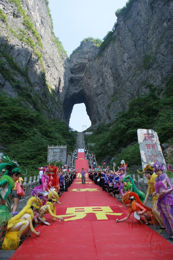 近几年,该区组织各旅游企业开展独具影响、特色鲜明、成效显著的促销活动。天门山公司成功举办了俄罗斯空军特技飞行表演赛、法国“蜘蛛人”攀爬天门洞、赛买提.艾山及中外走极限钢丝、冰冻大活人、翼装人飞行等系列具体轰动性效应的主题旅游营销活动。令人叹为观止的设施等“硬实力”,引人注目营销活动等“软实力”,地处市城区的区位优势,都让天门山名声远播,倍受游客青睐和市场认可。今年9月,天门山景区成功晋升为国家5A级风景区。据统计,全年营业收入将突破2亿元,成功跻身千万元纳税大户行列,彻底改变了武陵源核心景区一枝独秀的市场格局,被誉为“美丽张家界的新传奇”。
