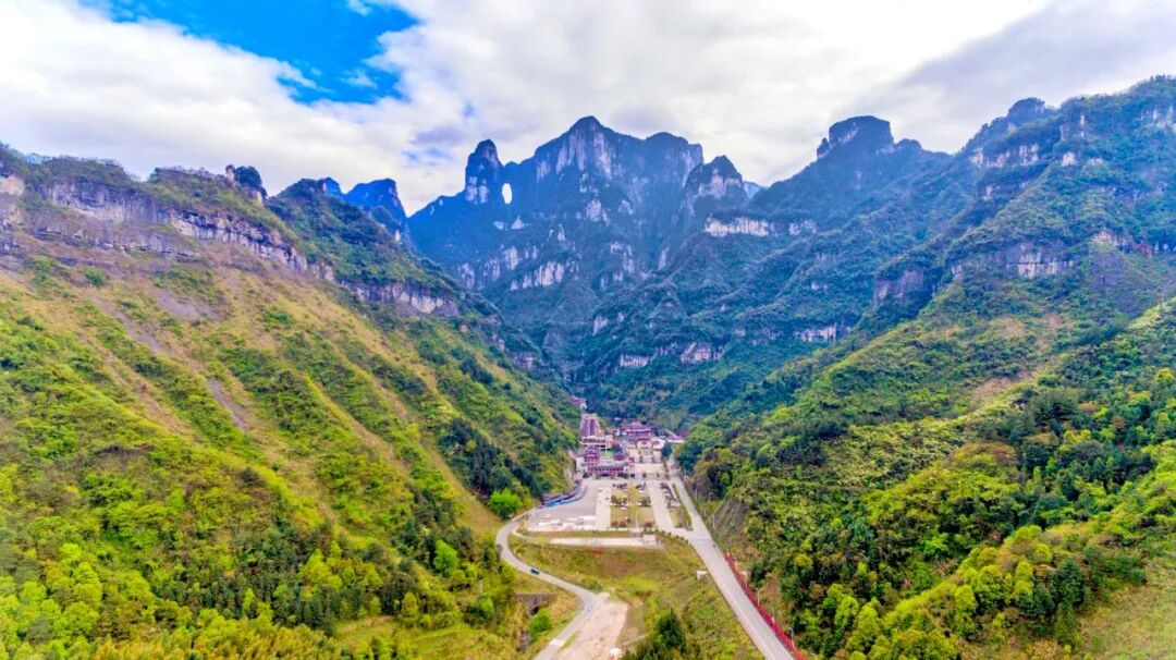 【天门山】古称云梦山、嵩梁山,是张家界永定区海拔最高的山,北距城区8公里,因自然奇观天门洞而得名,最早被记入史册的名山。有天门洞开景区、觅仙奇境景区、碧野瑶台景区、世上最长索道、天门洞等奇观,其间古树参天,藤蔓缠绕,青苔遍布,石笋、石芽举步皆是,处处如天成的盆景,被世人誉为世界最美的空中花园和天界仙境。