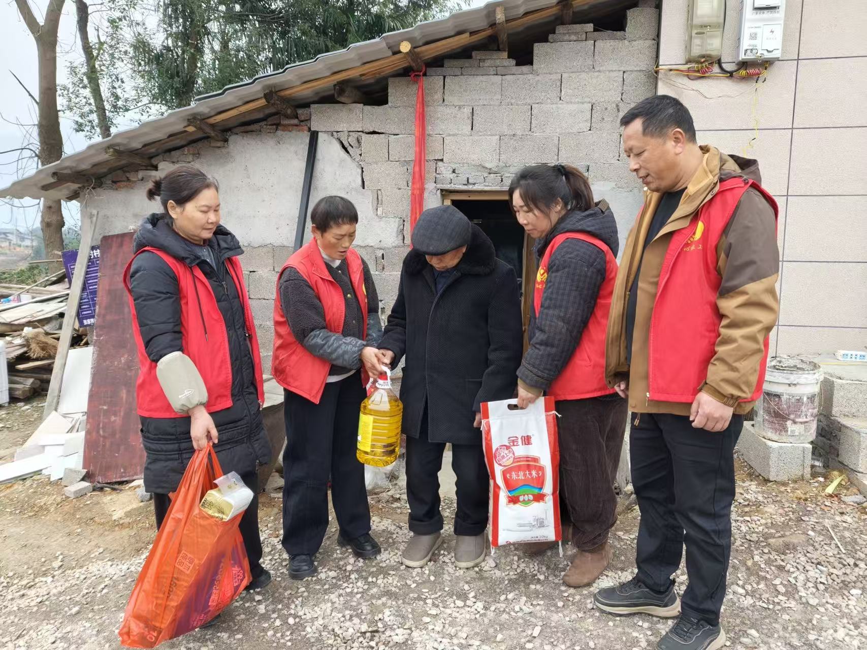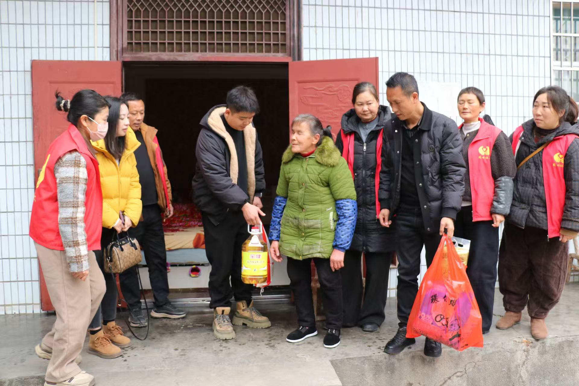 当天上午,在枫香岗街道工作人员与同心社会工作服务中心社工、志愿者的共同协作下,承载着关怀的爱心物资一一送往每一位老人家中。接过沉甸甸的物资,老人们的脸上洋溢着感激的笑容,连声道谢。他们纷纷表示,这份实实在在的帮助,不仅缓解了生活压力,让他们深切感受到了来自社会爱心人士的温暖。